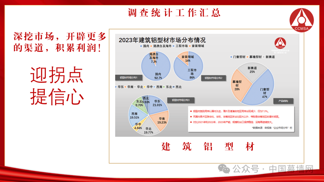 2023年的铝门窗幕墙行业内,喜忧参半、企业家们的情绪差异也非常巨大,失望者有之,庆幸者有之,悲观者有之,这是一个波澜壮阔的大时代。在诡谲的时期,坚定信心、愿意坚守与付出的企业家们才能做好企业,做大市场,做优产品,任何的侥幸与吝啬对企业的发展都无好处。
