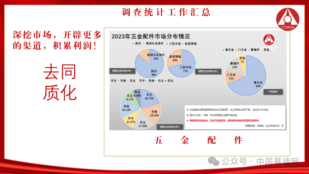 2023年五金配件企业开始探索更多的出路,因其产品特性所决定,配件类企业也是行业内最快实现多元化发展,与高效转型的企业,行业整合趋势明显。行业内的产能与销量出现了较往年更大的差异,但目前市场产值上影响不大,后续低端五金的产品市场有可能锁紧,这与工程市场表现不佳息息相关。