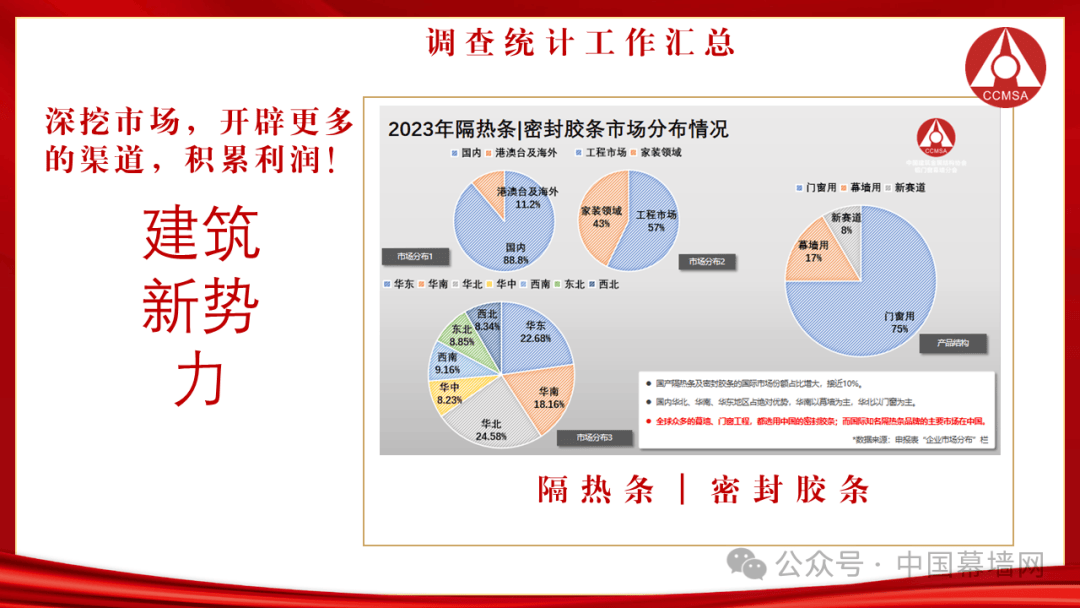 2023年,门窗幕墙行业经历了产业链快速转型和升级迭代的“大爆发”,建设现代化门窗幕墙及建筑玻璃、铝型材、五金配件、密封胶、隔热条和密封胶条等产业体系,夯实企业发展的根基,共同推进建筑新型工业化,迈向门窗幕墙制造强国、质量强国,助力数字中国建设。