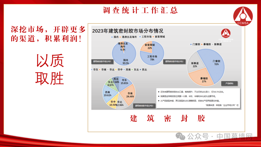 2023年的建筑密封胶是非常稳定的,虽然市场内给予的信号是幕墙项目下降,市场面在变窄,但行业内早已实现了更新与布局。两极分化严重,唯一利好是原材料大降,大企业靠规模换利润,小企业减产裁员。行业内开展新赛道的拓展,这在几年前开始的明显趋势有效的提升了行业的抗压能力。