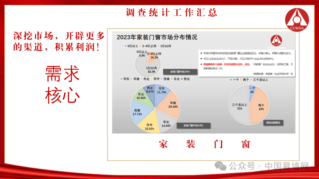 深挖市场,开辟更多的消费渠道,积累利润!市场需求对产品性能、质量、美观、节能等都提出了新的要求,从“大行业、小公司”的无序竞争阶段,到开启存量搏杀的新时代,门窗幕墙市场已进入一个前所未有的大转折时期,消费场景、营销服务、供应链管理、生产制造、产品研发等环节都在发生深刻变革,企业要想健康可持续发展,利润要一点一滴的“挖掘”出来。